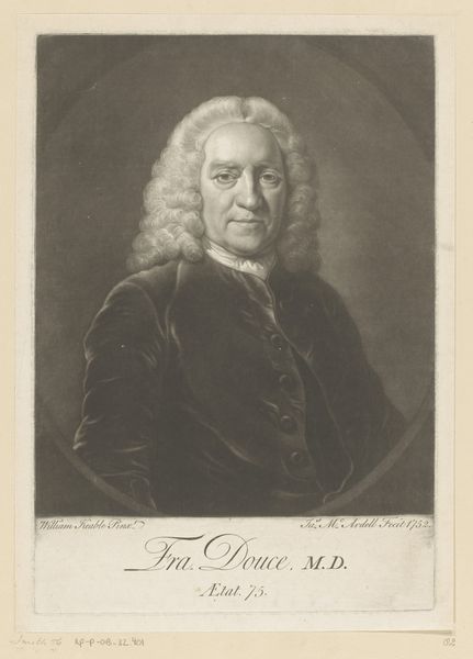 This is James McArdell's mezzotint portrait of Thomas Newman. McArdell, who died at just 36, was a master of the mezzotint technique, a process particularly well-suited to portraiture. Born into a world of rigid social hierarchies, Newman, as a reverend, occupied a distinct position within 18th-century society. This portrait gives us insight into the visual rhetoric of power of the time. The powdered wig, the clerical garb, and the formal pose all speak to Newman’s status and profession. Yet, if we look closer, we can also see the imprint of individual character. There’s a certain plainness in Newman's features, a directness in his gaze, that complicates the otherwise conventional image of authority. McArdell's skill invites us to consider not just the sitter's status, but his humanity. What does it mean to see a person, rather than just an office?