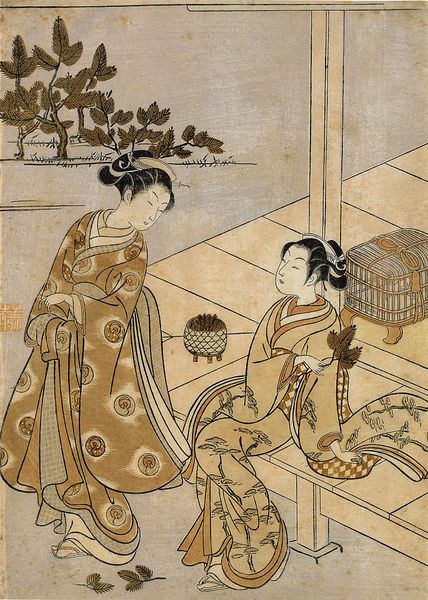 'A scene from the Poem of the Pillow' was created by Kitagawa Utamaro, who died in 1806, and presents a moment of intimacy between a man and a woman. Utamaro lived in the Edo period, a time of economic growth, strict social order and flourishing arts and culture. This work invites us to consider the complexities of gender and desire within the context of the Edo period. The woman's active role challenges traditional representations, offering an alternative narrative where female agency and pleasure are central. The intimate setting is depicted with delicate lines and soft colors, typical of ukiyo-e prints, evoking a sense of privacy and emotional connection. This artwork is not just a depiction of a private moment; it reflects broader societal attitudes toward sexuality and pleasure. It celebrates the emotional and personal dimensions of human connection.
