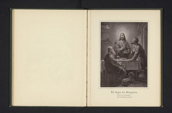 Curator: This is Frederick Hollyer's ink drawing, "Christ and the woman of Samaria," created before 1885. It offers an intriguing interplay of light and shadow. Editor: There’s a certain tranquility that emanates from it. The figures, Christ and the woman, seem suspended in a moment of quiet contemplation beside that well. Curator: The composition is certainly central. Consider the structural dynamic established by the well; it acts as a pivotal point, linking the figures while also creating a visual division between the left and right. How do you read that symbolic division? Editor: To me, the well itself is steeped in meaning, representing not just a source of physical sustenance, but also spiritual nourishment. In the historical context, wells were often communal gathering places, social hubs but this particular scene points to the challenging boundaries of different cultures and beliefs meeting, with water being both their connector and divider. Curator: Precisely, note the rendering of the landscape background, providing depth yet not distracting from the figures. Hollyer has cleverly created that dynamic. The subtle modulation in the treatment of shadow creates a palpable visual hierarchy. Editor: Agreed. And I keep coming back to the halos above their heads - such a traditional artistic trope but still so potent in marking these individuals as significant, set apart from the everyday. This symbol carries layers of cultural meaning. Curator: It also brings forth a challenge. What do you think about how that is in contradiction to what would appear to be Hollyer's realist style? Editor: Perhaps that visual juxtaposition is where its potency is drawn from. By presenting figures from sacred texts in the guise of everyday, identifiable humanity, Holleyer creates a point of contact for contemporary observers, beckoning them to project meaning. Curator: Hollyer, through his technical skill with ink, compels us to reflect on the broader themes. The strategic arrangement allows interpretation, I find. Editor: It's a deceptively simple piece, isn't it? Full of artistic intentionality and timeless visual storytelling.