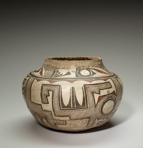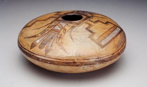 This is a double-spout vessel made by the Paracas people of ancient Peru. The society that produced this piece flourished between approximately 800 BCE and 100 BCE. The Paracas are known for their elaborate textiles and ceramics, often found in funerary contexts. This particular vessel likely had a ritual purpose, perhaps used in ceremonies relating to the afterlife. Notice the painted designs - geometric patterns and stylized faces. These are visual codes that would have been deeply meaningful to the Paracas, potentially representing deities, ancestors, or cosmological beliefs. The vessel’s double-spout design is unique to this region and time. The Paracas culture was rich in symbolism, and deeply connected with their environment. As historians, we can use archaeological records and studies of the Paracas burial sites to further understand the cultural beliefs behind this vessel. The meanings embedded in this artwork are contingent on a wider understanding of the historical and cultural context that produced it.