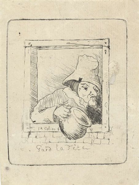 Curator: Good day. We are in Gallery 23 at the Rijksmuseum, and we’re looking at "Monnik met een beeld van Maria" – "Monk with a Statue of Mary," an engraving possibly dating from 1670 to 1724, by Jacob Gole. Editor: What strikes me immediately is the unsettling, almost grotesque expression on the monk's face, juxtaposed with the serene figure of the Madonna. It's immediately intriguing and kind of…off-putting? Curator: Precisely! This piece likely functions as a critique of religious practices. Gole, working in a time of religious and political upheaval, often used his prints to comment on the perceived hypocrisy within religious institutions. The exaggerated features of the monk – that sly, avaricious grin – clearly suggest a skepticism toward the man's pious façade. Editor: So, it's a caricature then? The monk looks like he's scheming, like he sees the Virgin Mary as a means to an end. It is powerful to think that he created this work at this time because he might have experienced first hand all that religious upheaval. Curator: Absolutely. The inclusion of the French text below further supports this interpretation, hinting at financial gain from idol worship. "I shall adore them, but understand me well; if I can get some double pistoles from it." It's a not-so-subtle jab at the commodification of faith. The piece is commentary on a particular facet of the Baroque's emphasis on grand displays, with all their worldly trappings. Editor: It is interesting how Gole rendered the monk's robe with so much texture, almost dirt-like, which only enhances that slightly repugnant expression. The Madonna, in contrast, appears quite smooth, though a little severe – a stark contrast. Curator: A point well taken. Gole's clever deployment of engraving techniques is paramount. The detail in the facial expressions is incredible, bringing the satirical intent to the forefront. By looking at the print in its historic context we can appreciate the artist's skill in creating a piece ripe with satirical intent. Editor: What a powerful statement rendered in a relatively small, understated engraving. Food for thought, indeed! Curator: Indeed. The image invites us to reconsider the motives behind outwardly pious acts, something just as relevant today as it was centuries ago.