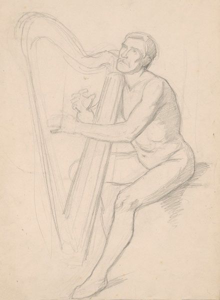 Curator: Right now we're looking at "Kantwerkster te 's Gravenmoer", or "Lace Maker in 's Gravenmoer", a piece from between 1874 and 1925 by Jan Veth. It's currently held at the Rijksmuseum. Editor: It feels incredibly intimate, doesn't it? Almost like we've stumbled upon a quiet moment in someone's life, sketched quickly, perhaps so as not to disturb. It has a fleeting quality, like memory. Curator: Absolutely. Veth was renowned for his portraits, and this drawing, executed in light pencil and blue ink, exemplifies his keen observation skills. Notice how the shading adds a delicate clarity, bringing the figure to life. It reminds us that Veth often produced initial sketches or studies in sketchbooks. Editor: It’s amazing how he captures her focus—her hands are so clearly engaged in this detailed craft, while the rest of her seems enveloped in stillness. It's a simple composition, but the starkness almost isolates the subject, highlighting the demanding precision involved in her task. Curator: You’re touching on a crucial point. There’s a geometric interplay, especially considering how the grid structures seem to be repeated between the threads she's working with, her lace making equipment and what appears to be the architecture. Semiotic relations play into the material conditions. Veth elevates a common occupation to a point of reverence. It is very architectural. Editor: I feel Veth doesn’t just document the woman, but also evokes the time and care invested in the piece she's creating. He creates this beautiful conversation around labour and production; time is captured, but we the future viewers can observe this interaction. What lingers for me is not the details of craft but the feeling of absorbed concentration; such beauty and serenity. Curator: For me, considering the socio-historical context, the drawing serves as a tender reminder of the value we place on labor, of the objects we value and a need to record something fading away; each precise stroke, a testament to craft that once sustained whole communities, now quietly persists.