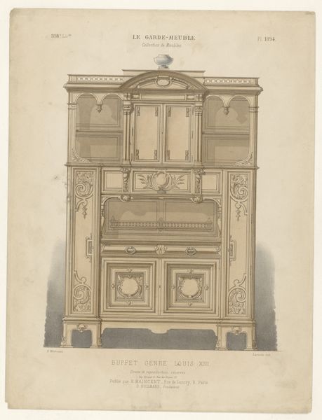 This drawing of a bookcase was made by Léon Laroche using what looks like pen and ink. The mark making here is so precise, and the line work is delicate, which makes me think about the planning involved. Like a painter mixing colors on a palette, Laroche would have had to consider how his lines would come together to create the illusion of depth, form, and material. Looking closer, you can almost feel the texture of the wood and the coolness of the glass. The lines are crisp and clean, and there’s a wonderful balance between the solid structure of the bookcase and the more decorative, flowing elements like the floral patterns. Check out the vertical lines in the central window, they create a subtle mirroring effect, adding to the overall sense of harmony and order. This drawing reminds me of the work of graphic artists like Otl Aicher. The kind of precision and attention to detail, where every line counts is amazing, don't you think? It shows how art isn't just about expressing emotions, but also about careful observation, design, and craft.