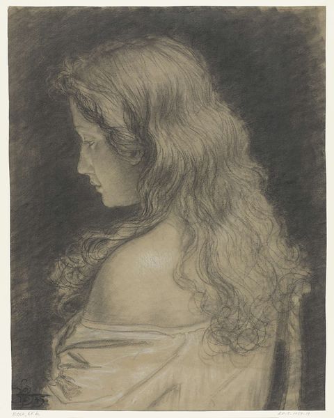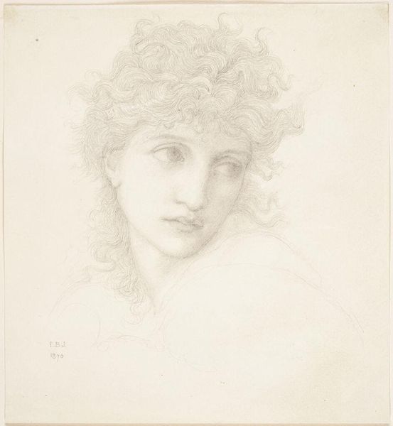 Editor: Here we have "Drawing of a Woman" by William Bouguereau, a pencil drawing and portrait. I find the woman's gaze both serene and confident. How do you interpret this work in its historical context? Curator: It's intriguing, isn't it? Bouguereau was a leading figure in the Academic art movement, deeply entrenched in the Parisian Salon system. He aimed to create idealized, seemingly timeless images. This drawing, likely a preparatory study, provides a fascinating glimpse into his process. The question becomes, what role did idealized female representation play in shaping social perceptions of women during the late 19th century? Editor: So, it's not just about capturing likeness, but also about upholding certain standards? Curator: Exactly. Academic art, including portraiture, often reinforced dominant social narratives. Think about the patrons, the institutions exhibiting these works, and the values they promoted. Did this idealized depiction empower women, or did it confine them to particular roles within society? How might viewers at the time have interpreted this gaze differently from how we do today? Editor: I hadn't considered how institutions influenced his choices. Now, knowing his allegiance to the Academy, her almost angelic beauty seems less a genuine portrayal, more a projection of societal ideals. Curator: Precisely. Considering the art market pressures and Salon expectations helps unveil a more complex picture than initially meets the eye. What initially struck you as serenity might also hint at the pressures to conform to a certain mold. Editor: I will keep that in mind going forward. Thank you for the new perspective! Curator: You're most welcome!