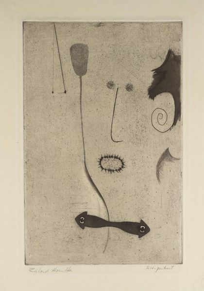 This is Charles Garjian's drawing of a 'Candlestand'. Observe how the central black line shoots upward, connecting a circular base to a tray with two cylindrical candle holders. The drawing utilizes simple shapes to create a balanced yet stark composition. Notice the contrast between the solid, geometric forms and the soft, neutral background. This tension hints at a semiotic exploration of function versus form. The candlestick, an object of utility, is rendered with an almost abstract quality. Garjian seems to be asking us to reconsider the everyday, to look beyond the object's purpose and appreciate its sculptural presence. Consider how the drawing's deliberate simplicity challenges our expectations of representation. It is through this formal language of line, shape, and tone that Garjian prompts us to question our perceptions and find new meanings in the mundane.