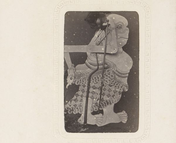 Curator: Immediately, I see an innocence. A silent protector watching over someone in need. Editor: This photograph features a sculpture entitled "Sculptuur van een kind met beschermengel" or "Sculpture of a child with guardian angel," attributed to Johann Friedrich Stiehm, dating back to somewhere between 1855 and 1890. Note that it's a photograph *of* a sculpture. A subtle distinction, perhaps. Curator: Yes, I wondered about that… it seems so lifelike but frozen, as if waiting for divine intervention. I’m almost expecting the wings to flutter. Editor: Guardian angels were a very common motif throughout the mid-19th century, reflective of an increased societal focus on protecting vulnerable populations—children in particular, especially given high mortality rates at the time. Photography gave families ways of imortalizing their beloved. Curator: It feels so tender though, doesn't it? Almost a desperate clinging. The way the child's form is slightly hidden, partially enfolded within the angel’s…there's something melancholic about that level of need. It's like vulnerability, literally, cast in stone, captured in emulsion. Editor: Stiehm seems to be marketing this tableau in popular stereo card format, the stereoscope creating an enhanced sense of depth. These affordable images brought art into ordinary households, turning anxieties surrounding childhood and spiritual comfort into consumer commodities. Curator: Consumer commodities—how cynical of you! Still, even mass produced, there is undeniably real craft in the carving. Notice how the light catches folds in the angel's robes versus the rougher tunic of the child? Little variations elevate it. And of course, makes for a stunning, layered photographic object. Editor: Precisely! Art isn’t hermetic. It breathes and exists within a complex nexus of culture, politics, economics… A sculpture designed for mass distribution raises important questions of access and influence. It may look lovely, but context truly illuminates the creator’s aims and societal consumption habits. Curator: Ah yes, consumption! It reminds us of the ongoing dialogue between vulnerability and safeguarding in our own culture, however it manifest. Editor: Exactly! And by studying these representations we learn much more than about art history - about ourselves.