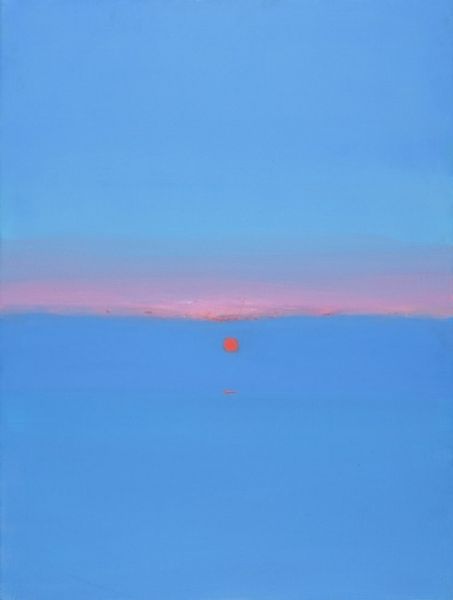 Editor: We're looking at "Sunrise of Wonder V," an oil painting. The tag suggests that this could be a plein-air artwork with impressionistic undertones. What strikes me is how serene the whole composition is, almost meditative in a way. What do you see in this piece, considering its historical context? Curator: This image definitely speaks to the ongoing dialogue between art and nature. The artist seems captivated by the fleeting moment, the transient light. How do we, as a culture, frame and value those moments? The title itself, "Sunrise of Wonder V," suggests a series – implying the artist is not just depicting a sunrise, but actively exploring an idea across multiple works. Editor: That's interesting. Is the repetition part of a tradition, or maybe a commentary? Curator: The impressionistic elements definitely link it to the 19th century movement where artists were trying to capture the effects of light. Consider Monet's "Haystacks" series or the Rouen Cathedral paintings. But the luminism also puts a uniquely American stamp on the painting through a more abstract view, highlighting expansive, untouched nature, a perspective tied to early environmentalist sentiments, don't you think? Editor: I see what you mean, like a celebration of undisturbed landscape, a cultural claim on the land, expressed visually. The art reminds people of the American landscape being both idyllic and uniquely beautiful, even if its "Realism" style isn't strictly that in presentation, but it tries to suggest. Curator: Exactly! And consider who this painting is meant for – is it meant to be displayed for the working class, or is it an image to evoke nostalgia, designed to adorn the walls of private, upper class residences? These choices inform its social impact, whether intentional or not. The politics of imagery extend into this type of visual art. Editor: That's really insightful. It's amazing how much social commentary can be packed into what seems, at first glance, to be just a pretty sunrise. I'll definitely be considering that tension moving forward. Curator: It is crucial for today, because you start looking not only at what art is, but rather whom it is *for.*
