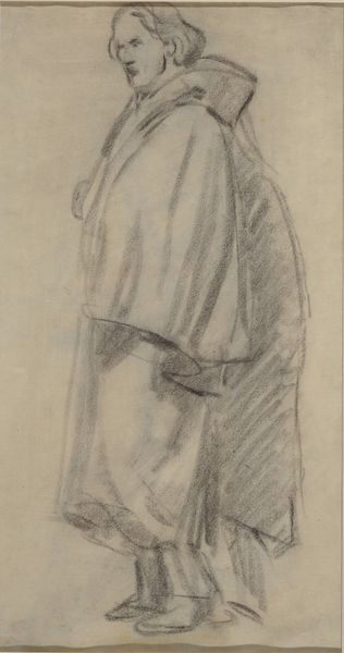 This drawing, "Standing Beggar," was made by Jan Both, likely in the 1640s, using black and white chalk on blue paper. The choice of materials here is really telling. Chalk is immediate, easily worked. The blue paper is tinted, giving the image a built-in atmospheric quality. And the very subject of the drawing – a beggar – reinforces the sense of an artist working quickly, capturing a fleeting impression. It's tempting to see this as simply a study of a down-and-out figure. But consider the labor involved: the beggar's labor, of course, the struggle to survive in a society that often disregards the poor. And also Both's labor, as an artist making his way in the world. Drawings like this were often made as preparation for paintings, a kind of visual note-taking. So, "Standing Beggar" isn't just a picture. It’s a record of human exchange, a transaction of looking and representing, with social implications embedded in every chalk mark.