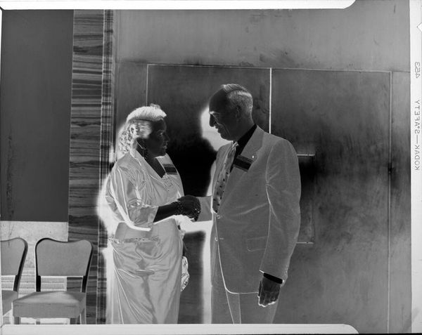 Editor: This gelatin silver print, "Untitled (two cats boxing)" by Lucian and Mary Brown, is pretty comical. It’s got two cats in a boxing ring, seemingly ready to throw paws! What's your interpretation? Curator: It’s so delightfully absurd! The contrast between the refined medium and the silly subject matter tickles me. Are we laughing at the cats, or at ourselves for projecting human drama onto them? Editor: That's a great question! It's making me think about anthropomorphism. Curator: Exactly! And the staged setting—the ring, the suit in the background—adds to the satire. Maybe it's a purr-ody after all! Editor: I'm never going to look at cats the same way again. Thanks! Curator: My pleasure. Now, if you'll excuse me, I think my cat needs a sparring partner…