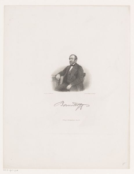 Curator: Oh, there's something melancholic about this one. Is it the steely gaze or perhaps just the monochrome palette? Editor: Indeed. Before us, we have a portrait drawing of B.P.W. Verweijde by Carel Christiaan Antony Last, crafted sometime between 1842 and 1887. It appears to be a combination of photography enhanced with pencil and graphite details. A fascinating blend of mediums! Curator: A photographic foundation... That explains the exacting detail. It gives the portrait an almost eerie verisimilitude. I keep getting lost in his eyes, they are really striking. It's a little unnerving, actually. Editor: Portraits like this served very specific functions. Verweijde, as a member of the bourgeoisie, would have used this type of image to project an image of stability and success during a period of social upheaval in Europe. Think of it as carefully constructed propaganda, designed to legitimize certain social and political power dynamics. Curator: Power dynamics. Right. It does make me wonder what sort of man Verweijde really was, behind the composed facade. It’s like glimpsing a ghost through a window... so solid yet fundamentally distant. Editor: The distance is part of the performance, I think. It asks us to reflect on who is given the power to be seen, who gets to author their image, and whose stories are deemed worthy of preservation. Consider the role of the artist in perpetuating or resisting such visual conventions. The somber mood you sensed initially could stem from the weight of these considerations. Curator: You know, looking at the tight jacket and that, frankly, spectacular moustache, I suppose one can't deny he was participating in a system of representation—playing his role. Still, there is something human flickering behind that, too. Art making is weird. It's always a power struggle with identity at stake. Editor: Exactly. Art objects are always in conversation with prevailing ideologies, reinforcing some and quietly undermining others. It is work with a political dimension, so worth contemplating that a little longer, perhaps. Curator: Point taken. Editor: Absolutely. It has given me pause for thought too!