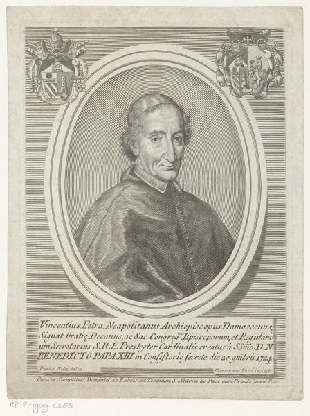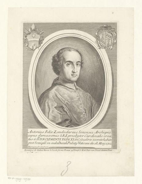Girolamo Rossi made this print of Cardinal Curzio Origo, in Rome, sometime in the first half of the 18th century. The image is framed by the visual codes of heraldry, emblems of family and papal authority. The cultural references serve to locate the Cardinal as a figure of influence in the papal bureaucracy of the time. Prints such as these were often commissioned by the sitter as statements of their power within institutions. In this case, we have Cardinal Origo, who served as Secretary under Pope Clement XI. The print presents Origo as a figure of civic importance, but also of ecclesiastical power. As historians, we might consult sources, such as Papal records, to understand how the social institution of the Catholic Church shaped the Cardinal’s identity and how, in turn, that identity was performed to a wider public.