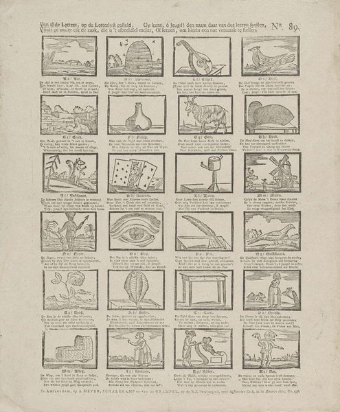 This broadside print, made by Erve H. Rynders in Amsterdam, is full of curious images rendered through woodcut. The process involves carving a design into a block of wood, inking the surface, and pressing it onto paper. The striking graphic quality of the print comes directly from this method. Notice the bold lines and sharp contrasts, characteristic of woodcut. The artist skillfully manipulated the wood to create a range of textures and tones despite the inherent limitations of the material. This wasn't just about aesthetics; it was also about efficiency. Woodcut allowed for the relatively quick production of multiple copies. In a time before photography, such prints played a crucial role in disseminating information and ideas, shaping public opinion and cultural values. The labor involved in producing this print, from the carving of the block to the printing process itself, reflects the evolving relationship between art, labor, and commerce. These are humble objects, but they tell a complex story of a society grappling with new forms of communication and consumption.