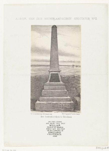 This print from 1815 depicts a monument to the Prince of Orange, commemorating the Battle of Waterloo. While we don't know the artist, the printmaking process itself speaks volumes. Look closely, and you'll see the intricate linework achieved through etching or engraving. These techniques, reliant on skilled artisans and specialized tools, allowed for the mass production of images. The print is not just an artwork; it's a document, a record of a specific time and its political fervor. The monument itself, a towering obelisk, represents power and victory, rendered in a way that could be widely disseminated. The materiality of the print makes it inherently democratic, allowing for the distribution of patriotic sentiment among a wider populace. It collapses the traditional hierarchy between fine art and printed ephemera.