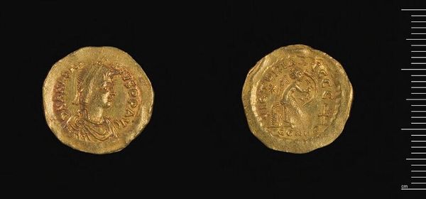Editor: Here we have a Tremissis of Zeno, a small gold coin currently residing at the Harvard Art Museums. It’s surprisingly…chunky, you know? What strikes you most about this tiny, ancient treasure? Curator: Well, imagine holding power, literally, in the palm of your hand! This coin isn't just gold; it's a statement. The Emperor Zeno, immortalized, ensuring his image—and thus his authority—circulated far and wide. It's a form of propaganda, wouldn’t you say? Editor: Absolutely! It’s like a miniature billboard. Thanks for pointing that out! Curator: My pleasure. Now, how do you see its relevance today?