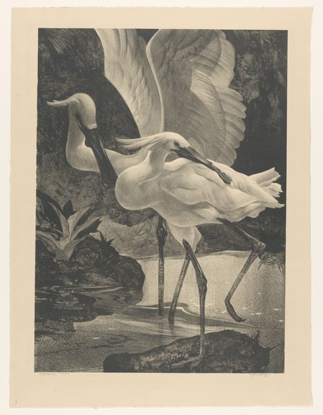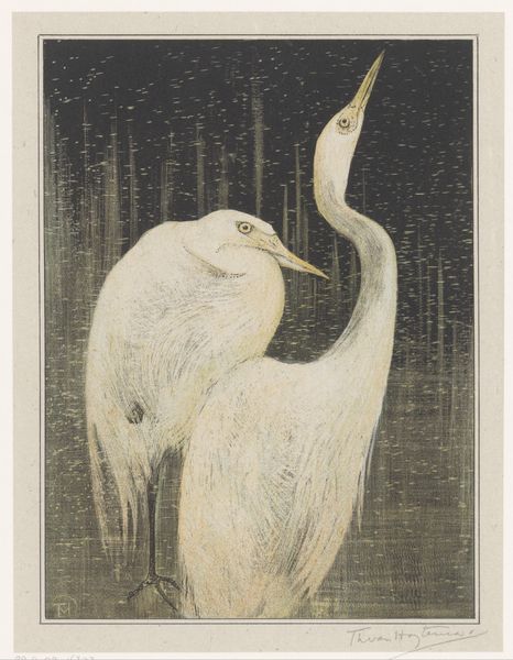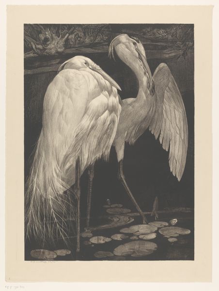 Henri Verstijnen created this print of a great egret at an unknown date using etching. The egret, a symbol of purity and grace, stands poised amidst water lilies, ancient symbols of enlightenment and rebirth. The symbolism resonates across cultures. In ancient Egypt, the heron, akin to the egret, was linked to the benu bird, a symbol of the rising sun and renewal. This motif surfaces again and again - in religious iconography, mythology, and even modern art. The egret’s elegant form, mirrored in countless artistic renderings of divine messengers, suggests a subconscious yearning for transcendence, a collective memory of spiritual quests. Its presence here evokes not just a visual representation, but a powerful, unspoken emotional connection to nature's delicate balance. The egret is not merely a bird, but a vessel carrying centuries of symbolic weight, an enduring emblem that engages our deepest selves.
