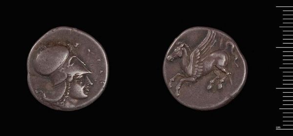 Editor: So, here we have an Octodrachm of Ptolemy I. It's a coin, so the material is likely metal. It feels… authoritative, I guess. What's the story behind its imagery? Curator: These coins weren't just currency; they were powerful tools of propaganda. Ptolemy I, after Alexander the Great's death, needed to legitimize his rule in Egypt. How do you think imagery helps him achieve that? Editor: I suppose the portrait shows him as strong, and the eagle suggests power? Curator: Exactly! The eagle was a symbol of Zeus, linking Ptolemy to divine authority. Consider how this controlled imagery shaped public perception and reinforced his claim to the throne. Editor: It’s amazing how much a tiny coin can tell us about power and image-making. Curator: Precisely. It's a reminder that even everyday objects can be deeply embedded in political and social narratives.