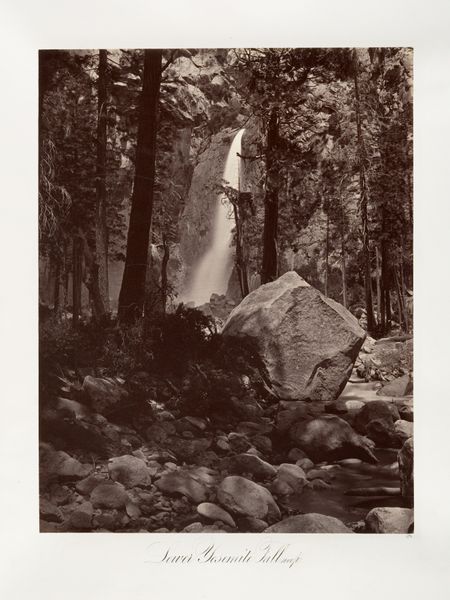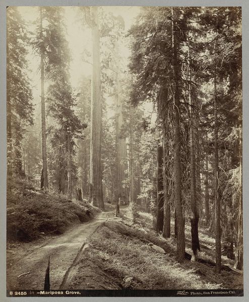 Editor: Here we have Carleton Watkins' "Father of the Forest," a gelatin silver print from between 1865 and 1866. I’m struck by the sheer scale of the trees, and the ladder really emphasizes that. What significance do you see in this work, especially considering the time it was made? Curator: This image is so evocative! Watkins created it during a period of intense debate about land use in the American West. The Yosemite Grant of 1864, which preceded this photo, aimed to protect the valley. But Watkins's images did more than just document the landscape. Editor: How so? Curator: They shaped public perception. His photographs, including this one, were exhibited and widely circulated, contributing to the romanticization of the West. The sublime grandeur suggested inherent value. Consider the placement of the ladder; is that a practical tool or does it imply something more? Editor: Perhaps it implies a desire to "measure" nature, an assertion of human presence. So, you are saying it played a part in encouraging the idea of conservation, but simultaneously suggested human dominance? Curator: Exactly. These images became powerful tools in advocating for national parks, pushing a specific vision of nature: monumental, pristine, and available for controlled access. But the narrative of untouched wilderness often sidelined Indigenous land claims. Do you see how images can shape a cultural landscape beyond just mirroring reality? Editor: Definitely. It’s interesting to see how Watkins' work helped frame the debate and solidified a certain vision of the West. Curator: And how that vision, while seemingly benevolent in its conservationist goals, was deeply embedded in the politics of the time. Thinking about the socio-political effects gives the picture more depth than only the aesthetic experience. Editor: I'll remember that the next time I wander through the Met. Thanks!