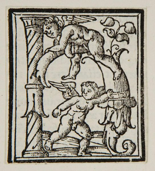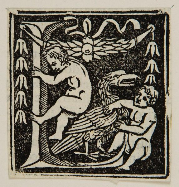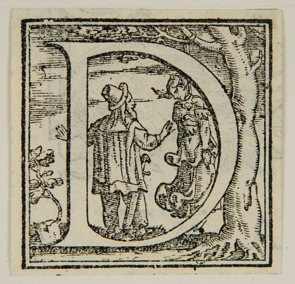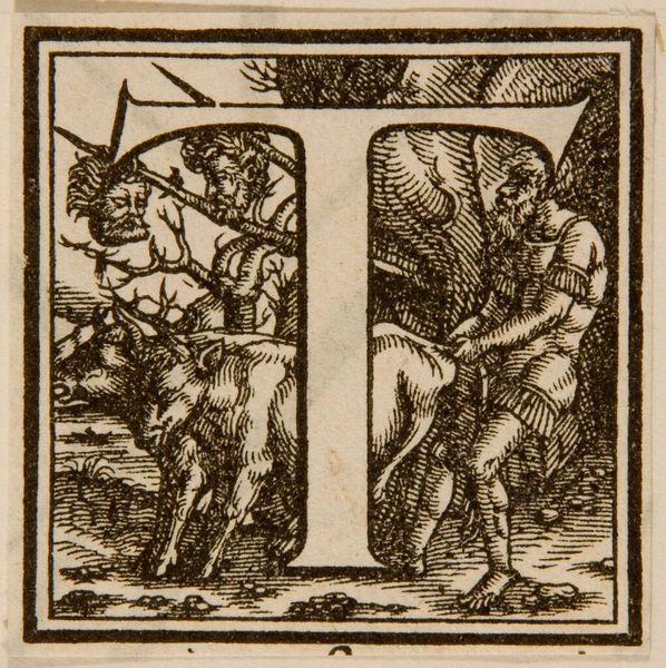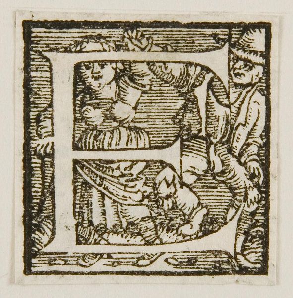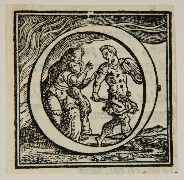 Editor: Here we have the "Letter L," an intriguing anonymous piece from the Harvard Art Museums. It’s hard not to notice the dramatic scene unfolding within this small print. What's your take on the narrative being presented here? Curator: Oh, this "L" is more than meets the eye. I see a miniature stage for human drama, a battle perhaps, maybe even a bit of Shakespearean tragedy tucked into the alphabet. See how the letter itself becomes a structural element, framing the conflict? It makes me think about how even the most mundane forms can hold such powerful stories. Editor: That's a fascinating point! So, it's not just a letter, but a container for a whole world? Curator: Precisely! And isn't that what art is all about? Finding universes in the unexpected. I wonder what other secrets this little "L" is hiding…