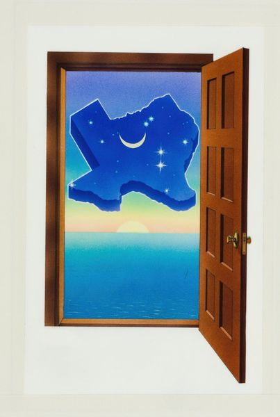 Konstantin Korobov's painting, *Doors*, invites us into a world where the familiar laws of space and perspective are subtly destabilized. The canvas is dominated by a large, grayish door, slightly ajar, revealing a nocturnal seascape with a star shining brightly in the distance. Below, there's a smaller door opening to a sunlit desert scene, complete with miniature dunes and a tiny white cat. The interplay between the doors creates a striking contrast between night and day, sea and desert, challenging our sense of reality. Korobov's strategic use of nested images asks: how do we categorize reality? Is it a singular, fixed entity or an endless series of interconnected worlds, each accessible through its own threshold? The painting cleverly uses formal elements to question the nature of perception. It invites us to consider that what we see and how we interpret it is always mediated, always framed, and always subject to multiple interpretations.