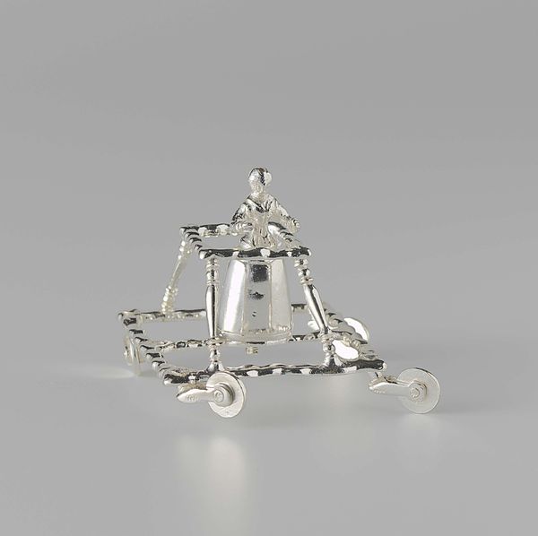 Editor: So, this is a silver toast rack, crafted sometime between 1860 and 1870 by the Gorham Manufacturing Company. I find its symmetrical design and the smooth, reflective surfaces so striking. What immediately grabs your attention when you look at it? Curator: The elegance of line and the precision of form are remarkable. Notice how the arches create a rhythmic progression, a series of identical shapes interacting to define the space. This repetition lends the object a certain visual harmony. Furthermore, the material itself—the polished silver—reflects light, thereby dissolving the boundary between object and environment. How does this interplay of form and light contribute to your perception of the work's "mood"? Editor: That’s a great question. The reflection makes the solid form almost ephemeral, and there’s a tension between the functionality and the ornamentation… those medallions, for example. Curator: Indeed. They provide a focal point, interrupting the relentless regularity of the arches. We observe the balance of negative and positive space and their interaction and note the precise ratios defining the structural form. Semiotically, what meaning does it convey? Editor: Perhaps a sense of refined living or an idealized version of domestic life. Everything seems ordered and symmetrical, not messy or chaotic. It makes me wonder about function versus form. Curator: A pertinent consideration. The "Arts and Crafts" movement strove for functionality, and although ornamentation can make such everyday pieces less useful, I feel that Gorham balances this well. I think it’s the linear composition. What do you think of it overall? Editor: This piece is really something. The artist did very well by harmonizing all these components together! Curator: Precisely, and studying the internal composition of such forms can enlighten a new way of thinking when visiting other exhibitions in museums.