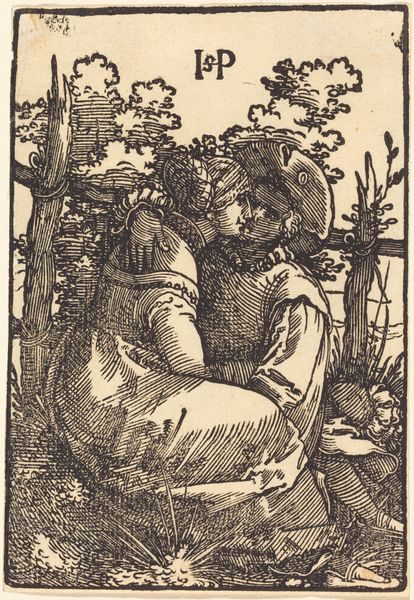 This etching, "Boerenpaar en drie kinderen bij een boom," was created in the 17th century by Aert van Waes. During this period, the Dutch Republic experienced a Golden Age, marked by economic prosperity and cultural flourishing. Van Waes's image presents a family of farmers sharing a drink under a tree. The image provides insights into the lives of the working class, yet it also presents a romanticized view of rural life that was common in Dutch art of the time. Look at the details: the family's clothing, their tools, and even the landscape. They speak to the realities and the hardships of agricultural labor. There's an emotional depth to this piece. The family's closeness, the shared drink, and the protective stance of the parents evoke themes of love, security, and the passing down of traditions. While seemingly simple, the image invites us to reflect on our own connections to family, nature, and the labor that sustains us.