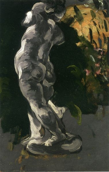 Eric Fischl painted "The Offspring of a Murderous Love" using oil on canvas. The painting unfolds with a stark contrast: a tableau of figures bathed in a soft, almost mournful light, juxtaposed against deep shadows. Fischl employs a restricted palette, focusing on muted tones and stark contrasts, to amplify the thematic weight. The composition creates a sense of unease. The figures appear frozen in a psychological drama, their forms solid yet somehow vulnerable. The sculptural quality of the figures suggests a historical context, evoking classical statuary while simultaneously disrupting its ideals. The title itself suggests a narrative of conflict and consequence, challenging fixed meanings of love and violence. Through his precise formal arrangement, Fischl explores art's capacity to unsettle and provoke.