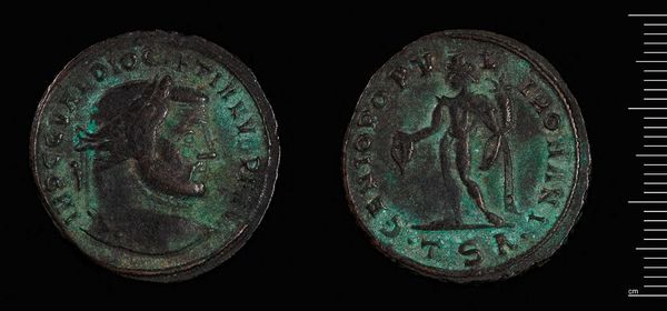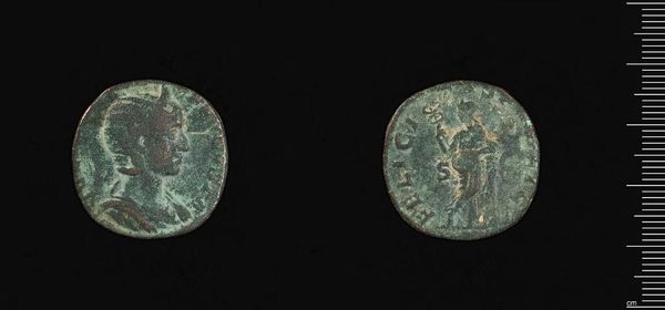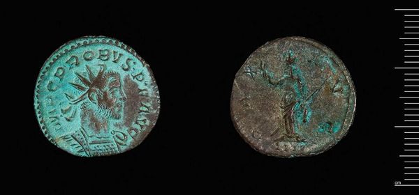 Editor: Here we have a coin featuring Constantius II, ruler of the Roman Empire, a bit battered by time. It's lovely, though, in a way. What stories do you think this little disc could tell us? Curator: Oh, if only coins could talk! This particular coin offers a fascinating snapshot into the late Roman Empire. Notice the reverse: a Roman soldier spearing a fallen foe. It's a clear message of military strength. Editor: It seems a bit… brutal, doesn’t it? Curator: Power wasn't always pretty. But coins like these were crucial tools for imperial propaganda, circulating images of authority and might throughout the vast empire. It makes you wonder how far this one traveled, doesn’t it? Editor: Definitely! It makes me consider the coin's life after its creation. Curator: Exactly! Each scratch, each imperfection whispers tales of commerce, conflict, and the slow march of time. Coins connect us to the past in a tangible way.