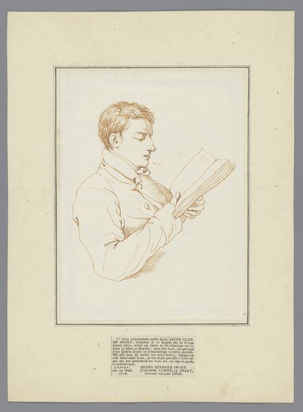 This is Frederik Lambertus Geerling's pencil drawing, "Portret van een man." This portrait gives us a glimpse into the Dutch Biedermeier culture of the mid-19th century. The man is captured in a moment of quiet contemplation. The artist invites us to consider the man's identity through his reading material, dress, and composure. During this time, there was a growing emphasis on domesticity and the private sphere, particularly for the middle class. What does it mean to see this man as a representation of this shift towards the personal and the intimate? The gaze and posture evokes a sense of bourgeois respectability. The man's act of reading suggests intellect and an engagement with the world beyond his immediate surroundings. This portrait serves not only as a representation of an individual, but also as a reflection of the values and norms of his time. It makes you wonder about his inner thoughts and how he navigates his role within the social and political landscape of the Netherlands.