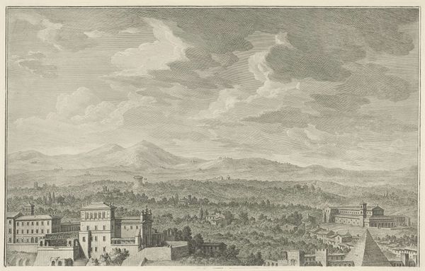 This landscape view was drawn with graphite on paper by an artist named Chapotay. It's a fairly traditional medium, but the artist's technique reveals a lot about the social context. The drawing is incredibly detailed, depicting buildings, trees, and figures with precise lines and shading. You can almost feel the rough texture of the stone walls and the delicate leaves of the trees. The labor involved in creating such a meticulous drawing is evident, a testament to the artist's skill and dedication. Notice how the artist has captured the daily life of the people in the landscape, their work at the well. This isn't just a pretty picture, it's a glimpse into the social fabric of the time. By focusing on these everyday scenes, the artist elevates the ordinary, reminding us of the value and dignity of labor. Looking at the drawing this way helps us appreciate the skill involved, and the way it connects to broader social and economic themes. It reminds us that art isn't just about aesthetics; it's about people, work, and the world around us.