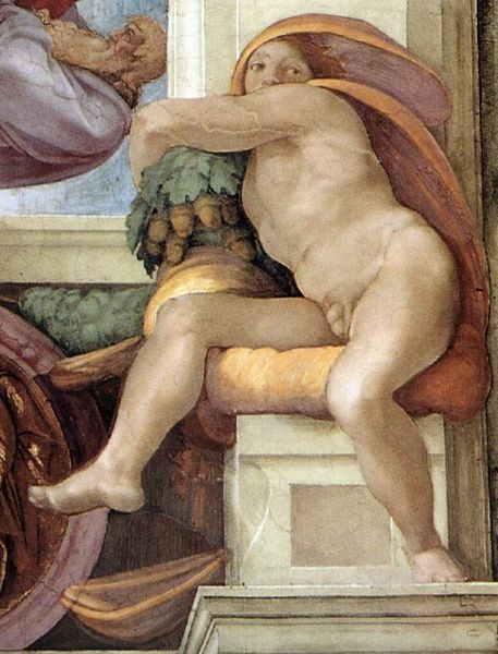 Editor: So, this is "Descent from the Cross (outside left panel)," painted by Peter Paul Rubens in 1614. It’s oil on panel. It's quite striking how Rubens uses light to sculpt the figure. The muscular form practically leaps out of the dark background. What elements of its formal construction strike you the most? Curator: The figure’s anatomical exaggeration, while typical of Rubens's style, serves here to amplify the sense of burden and physicality. Observe how the light doesn't simply illuminate; it models. It accentuates the torsion of the torso and the weight distribution – crucial for understanding the figure’s labor. Notice how the placement of highlights directs our eyes. What do you perceive about the direction of movement within the composition? Editor: It definitely feels grounded and earthbound, yet the figure and drapery lead the eye upward a bit, almost as if ascending against gravity, even while his feet root him to the ground. It seems contradictory. Curator: Precisely! This visual contradiction is key. It introduces a dynamic tension, a visual counterpoint, wouldn’t you agree? Also, reflect on the interplay between the rough texture of the staff and the smoothness of the skin. This contrasting texture heightens the sensuality, typical of the baroque, which is juxtaposed with religious seriousness of his mission. Editor: I hadn’t noticed the contrast in texture so clearly. That push and pull between roughness and smoothness, along with the light and shadow, gives it a captivating visual tension. Curator: These contrasting textural and lighting strategies invite the viewer to engage with the work on a deeper level, focusing not just on the narrative content, but also on the formal language through which Rubens conveys meaning. A powerful dynamic for such a stoic, yet tender character! Editor: Absolutely! Now I see a profound complexity arising from simple compositional choices. It's been illuminating to analyze Rubens’ artistic intention based solely on these intrinsic components. Curator: Agreed. Examining artistic creations under different perspectives expands our way of perceiving art!