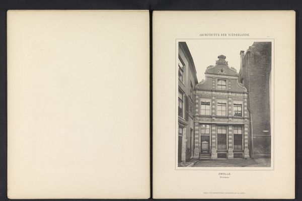 This architectural study, titled "Gezicht op de gevel van de Stads teekenschool in Haarlem," presents a monochromatic, detailed view of the Haarlem drawing school's façade. The use of line and form dominates our perception, emphasizing the geometric relationships and structured ornamentation of the building. The alternating light and dark bands create a rhythmic visual texture, drawing the eye upward. The composition is rigidly organized, focusing on the symmetrical arrangement of windows and decorative elements. This formal symmetry is not merely aesthetic; it reflects deeper values of order and reason, characteristic of architectural representation. It also invites us to consider the semiotic function of architecture. Each element—window, cornice, and gable—functions as a sign, communicating ideas about civic pride, artistic education, and historical continuity. The architect plays with the tension between surface and depth, flatness and volume. This reflects a broader concern with how we perceive space and construct meaning through visual representation.