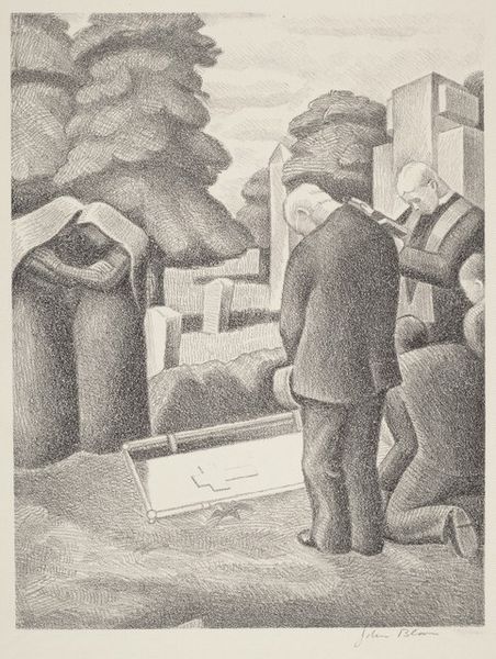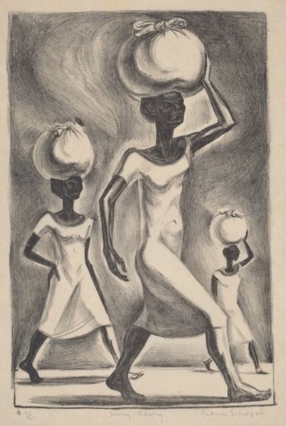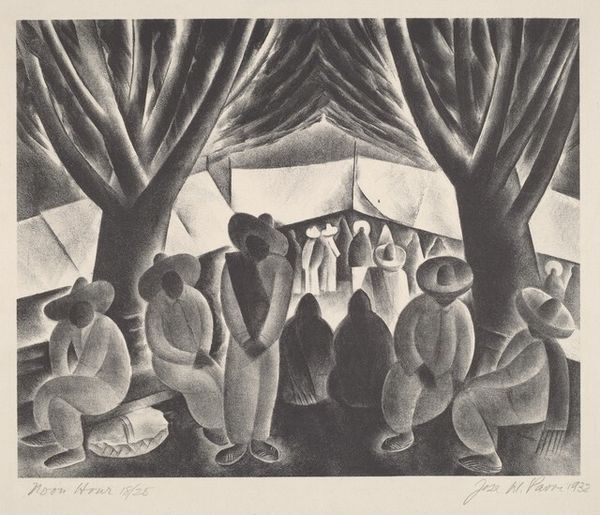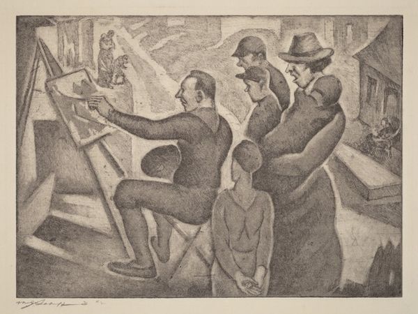 Stefan Hirsch made this lithograph, Street in Mexico, in 1932, using only black ink to create a full spectrum of values through a delicate process of hatching and mark-making. The tonal variations created by the lithographic crayon on stone are so soft, almost like a pencil drawing. Look at the ground: it's made of tiny, dense marks, a kind of vibrating energy. In contrast, the figures are delineated with clear outlines, which gives them a solidity, but also an isolation from their environment. It’s as if the crowd is a cut-out, pasted on a textured ground. The details on the figures’ outfits gives them a visual richness, but the somber tonality subdues this, giving the overall image a feeling of melancholy. I think Hirsch was onto something, something about the way the world just is: a combination of surfaces, textures, objects, people, all bumping up against each other. Like the work of Charles Sheeler, Hirsch creates a feeling of disquiet by subtly disorienting his subjects. But in the end, like all successful art, Street in Mexico creates a space for us to wander, to make our own connections, and to find our own meanings.