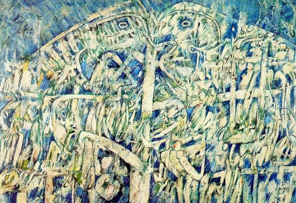 Nicholas Roerich made "Shadows," a painting where it seems that layers of red and blue have been applied, then wiped away, revealing the textured surface underneath. It's like he's building up an image, then pulling it apart again. The paint application is thin, creating a sense of depth and luminosity, but the marks are laid down in an open and direct manner. See how he suggests figures in the foreground, almost like ghostly apparitions emerging from the darkness? The forms are ambiguous, but there is a sense of movement, of figures caught in some ritual or procession. Roerich’s interest in symbolism reminds me of Odilon Redon, with a focus on the spiritual and mystical. Like Redon, Roerich embraces the power of suggestion over explicit representation, inviting the viewer to engage in a process of interpretation and discovery. It's a beautiful example of art's endless capacity for reinvention and reinterpretation.