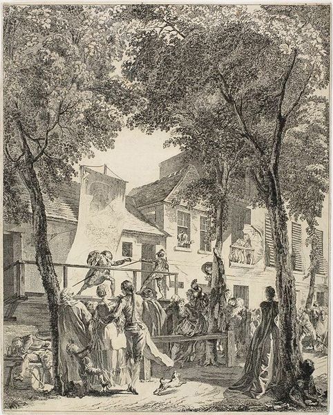 Abraham Frena’s “Straatscène” captures a moment frozen in time, rendered with ink and gray wash on paper. The street scene comes alive with a theatrical air; a crowd of figures in cavalier hats, their gestures animated in what appears to be a negotiation or exchange. While we are given a snapshot of daily life, the drawing unveils the intricate hierarchy of 18th-century Dutch society. The work raises questions about the narratives we construct around identity, class, and historical events. The fashionable attire and confident stances hint at the privileges of the merchant class, contrasted perhaps with more marginalized figures absent from the scene. What unspoken stories are lurking beneath the surface, in the absences, in the untold experiences of those not represented? Through Frena’s skilled hand, we confront the complexities of human interaction, reflecting on the stories we tell ourselves about power, identity, and belonging.