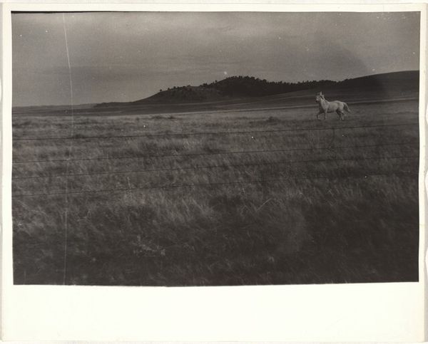 Robert Frank captured this black and white photograph, "Horse in field--Wyoming or Nebraska," somewhere in the American West. Frank, a Swiss immigrant, embarked on a road trip across America in the 1950s, funded by a Guggenheim Fellowship. The image, seemingly simple, offers a glimpse into the complex relationship between the American Dream and the realities experienced by those living on the margins. The lone horse, a symbol of freedom and the West, is set against a vast, almost desolate landscape. The dark and moody sky could evoke a sense of isolation. Frank's work often challenged the idealized images of American life prevalent at the time. His outsider perspective allowed him to capture a rawness and authenticity that was both groundbreaking and controversial. This photograph, with its quiet beauty and subtle tension, invites us to reflect on the promises and contradictions inherent in the American narrative.
