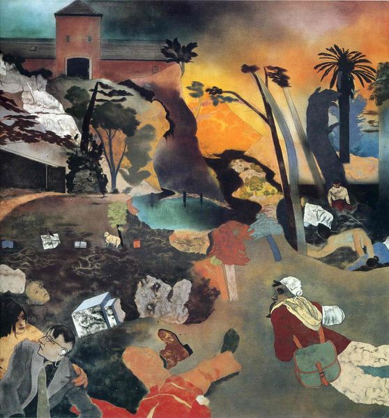 Oyvind Fahlstrom made this variable painting called Roulette at some point, we aren't quite sure when, or with what, but it's got a lot of stuff going on! It seems like a big collage, like he was moving things around a tabletop and taking a photo. Fahlstrom uses all sorts of images, like bits of bodies and faces, next to a lake or a public speaker on the road. It’s like flipping channels on TV, a stream of consciousness. All this imagery is pasted together, and then painted over. It feels like a raw, urgent process. Nothing’s too precious, and it all kind of tumbles out at once. There’s one part, where the lips and teeth are really clear and oversized, looming over everything else, like the grin of the Cheshire Cat. The whole piece is super busy, chaotic even, but in a way that makes you feel like you’re in the middle of something exciting. It reminds me a little bit of some of Jess Collins' dense, visual collages, full of hidden meanings. Ultimately, the magic is in the mix, and in letting go of needing to understand everything all at once.