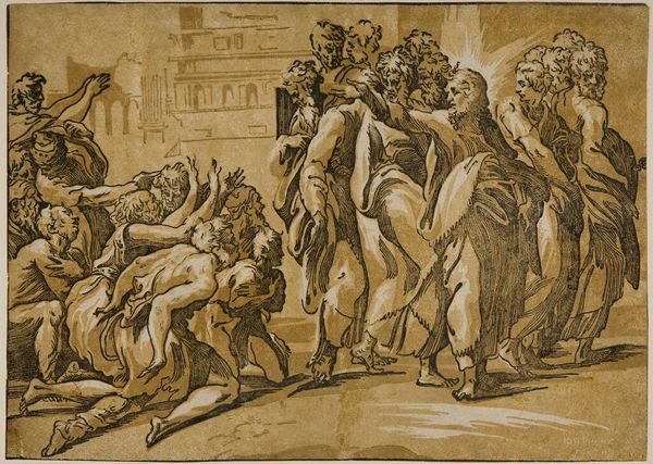 This is Titian’s drawing, 'Apostles group', made in the 16th century, though the exact date is not known, with pen and ink. It reflects the religious and artistic context of Renaissance Italy. The drawing depicts a group of figures, presumably apostles, in dynamic poses expressing intense emotions, possibly witnessing a divine event. Religious institutions played a vital role in shaping artistic production as the Catholic Church commissioned art to inspire devotion and convey religious teachings. Titian, as a prominent artist, navigated these institutional structures while developing his own artistic vision. The poses are dramatic and emphasize human emotion as a way of conveying religious experience, which was very typical of the Counter Reformation, whose adherents aimed to restore the Catholic Church's prominence. To better understand the drawing, research into Titian’s artistic development and his relationship with religious patrons would give us greater insight into its intended meaning and reception. This is a good example of the way that art, and our understanding of it, is contingent on social and institutional context.
