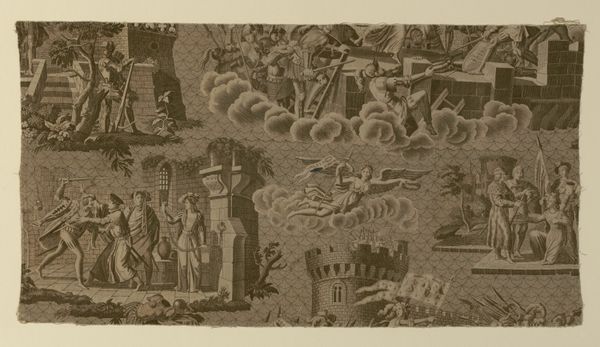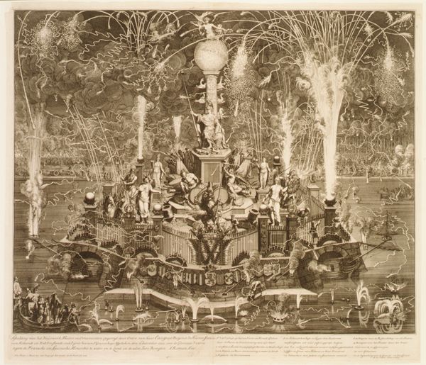 Editor: Here we have Jacques LePautre's "Birth of the Dauphin, Toulouse, 1682: Capture of the Golden Fleece," an engraving dating back to 1682. It's incredibly detailed. I’m initially struck by how theatrical the scene feels. What’s your take on this, looking beyond the surface? Curator: It's more than just theatrical, it's a piece of carefully constructed propaganda. It's an allegory linking the birth of the French Dauphin, heir to Louis XIV, to the myth of Jason and the Golden Fleece. We need to deconstruct its function within the socio-political context of the French court. How does linking the monarchy to classical heroism reinforce its power? Editor: That's a fascinating angle. So, the Golden Fleece represents the glory and power being passed down through the royal bloodline? But why use such an elaborate allegorical scene for what's essentially a birth announcement? Curator: Exactly. Consider the role of visual culture in legitimizing power. Louis XIV was a master of self-promotion, and art was a key tool. The engraving isn't merely celebratory, it’s performative. It establishes a narrative of divinely ordained rule, tying the monarchy to enduring myths of heroism. How might the visual language - the swirling lines, the dramatic composition - contribute to this message? Editor: I see what you mean, the baroque style is over the top! Everything looks intentionally designed to feel imposing and legitimize Louis XIV’s power through these grand, embellished historical references. And I didn’t realize at first that it was about legitimizing power through visual allegory. Curator: And the use of printmaking makes this accessible and repeatable, so these concepts became readily disseminated! Considering that makes us consider modern equivalents, which are equally powerful tools.
