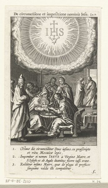 Curator: Here we have "Uitstorting van de Heilige Geest," or "The Descent of the Holy Spirit," an engraving by Cornelis van Caukercken dating from somewhere between 1640 and 1680. What strikes you immediately? Editor: The intense rendering of the figures really draws me in. It's so theatrical. All those eyes looking upward, and those textures created purely with line. What kind of labor went into achieving this range of dark and light? Curator: Absolutely, let's delve into that. This print captures a pivotal moment from the Bible, Pentecost, when the Holy Spirit descended upon the apostles and Mary. Think about the historical and theological implications. They were suddenly empowered with the ability to speak in different languages. What narratives are made newly accessible by understanding the artwork as intersectional? Editor: And it's not just the narrative itself, but the means of reproducing that story that interests me. Engraving is a highly skilled craft. The density of lines creates an almost tactile experience. I wonder about the accessibility of prints like this—who was commissioning them and for what purposes? Was this a form of religious instruction? Decoration? Political messaging? What do you make of the textual information surrounding the image itself? Curator: It certainly served multiple functions. In this case, this print commemorates someone important in the Cistercian Order, perhaps to celebrate or solidify his position. By circulating images like these, it solidifies shared beliefs within religious networks, and by including the information we see at the bottom, there may have been some personal message embedded for those in the know. Editor: So, this wasn’t just an aesthetic object. It was a tool, functioning within social and economic structures. Knowing the production processes – the materials, labor, and intended use - makes me rethink how we value it today. Curator: Yes, shifting our understanding toward appreciating it both as a material object deeply embedded in its context and a vessel containing a rich, symbolic history allows us to see it with new eyes. Editor: It's fascinating to consider all the hands and contexts involved. Curator: Indeed, the multiple layers invite a more profound appreciation.