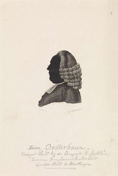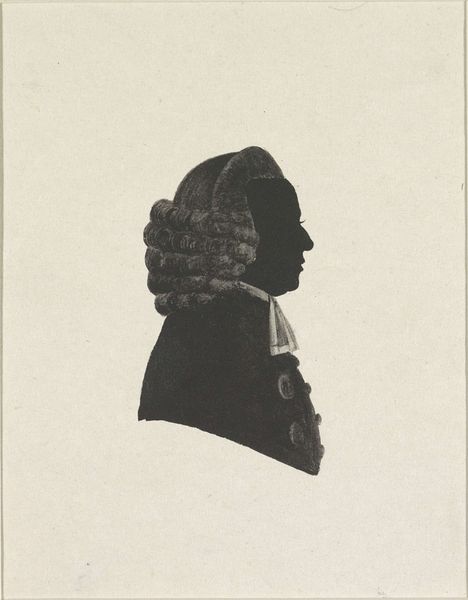 This silhouette portrait of Allard Hulshoff was crafted by Antoni Zürcher, likely towards the end of the 18th century, capturing a man adorned in the attire of his time. The powdered wig, more than a mere fashion statement, was a potent symbol of status and belonging, tracing its origins back to the French court of Louis XIII. Yet, beyond its immediate social connotations, the wig also whispers of broader cultural anxieties surrounding appearance and identity. The subject's deliberate choice to present himself in this manner is a profound visual language. Consider the silhouette itself. Its stark contrast between light and dark evokes a primal connection to shadow play, one of humanity’s oldest forms of storytelling. The silhouette resurfaces through time, a non-linear progression, and takes on new meanings in different historical contexts, each time reflecting the complex interplay between self-representation and cultural expectations.