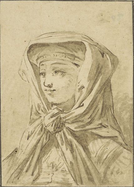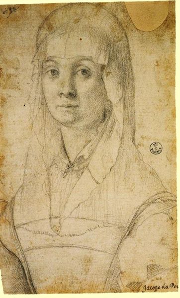 Editor: This is Jan de Bray's "Portrait of a Woman with a Muff," housed at the Harvard Art Museums. It's a striking sketch in red chalk. The woman's gaze feels very direct; what do you see in this piece? Curator: The muff itself becomes a powerful symbol here. Beyond warmth, it suggests modesty, but also perhaps a hidden sensuality. Do you notice how the woman's eyes meet ours? It is as though she's aware of being seen and subtly challenges our gaze. Editor: That's fascinating. The muff as a symbol of both modesty and sensuality hadn't occurred to me. Curator: Symbols often carry double meanings, shaped by both personal and societal perspectives. It's an invitation to look deeper. Editor: Thanks! This helped me appreciate the artwork in a different light.