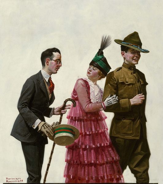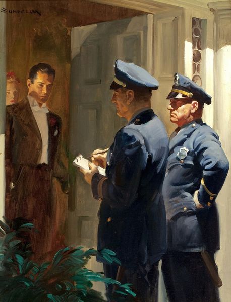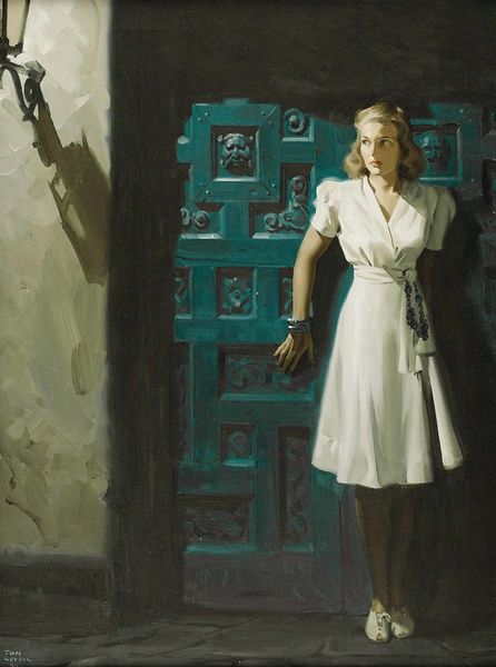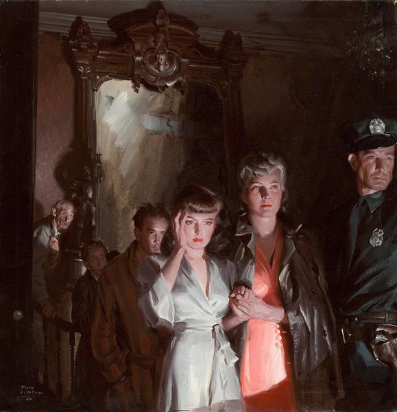 Tom Lovell's, The Occupation Of Paris, made with oil paints, presents us with such a striking juxtaposition of power and vulnerability. You can see it in the way the figures are rendered with these soft, almost yielding brushstrokes, yet there's a clear definition to their forms. It’s like Lovell is feeling his way through the scene. The colors are muted, somber even. This all feels very intentional, drawing our attention to the subtle textures. The red of the curtains is so deep, almost velvety, while the skin of the young woman holding the child is luminous. It's this contrast that really pulls you in. The way the light falls on the child's face, the soft curve of the woman's cheek, it's all so delicate and vulnerable, especially when you consider the very harsh presence of the soldier, standing so rigidly, rifle in hand. Lovell's really got the influence of illustrators like Norman Rockwell in this piece, but with a darker, more narrative edge. Ultimately, Lovell leaves us with more questions than answers, doesn't he? And that's what makes it so compelling, the ambiguity and depth that invites endless interpretations.