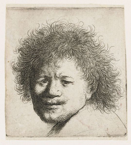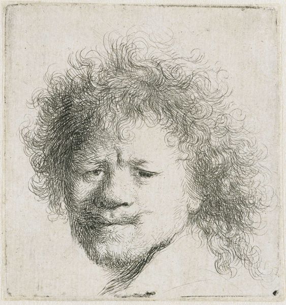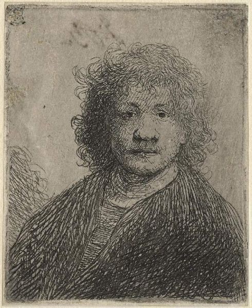 This is Rembrandt van Rijn’s self-portrait, head only, made as an etching. Rembrandt was a master of self-portraiture, creating numerous images throughout his career. In 17th-century Netherlands, the self-portrait served not only as a way for artists to refine their skills, but also to assert their identity within a rapidly changing society. In this image, Rembrandt presents himself with a certain degree of informality. His expression is introspective and contemplative, inviting viewers to consider the man behind the art. There’s an emotional rawness, as he captures himself with a vulnerability that defies the conventions of portraiture at the time. He often explored the nuances of human emotion, representing a move away from idealized depictions toward a more realistic portrayal of human experience. Beyond an individual likeness, this self-portrait embodies universal themes of aging, self-awareness, and the human condition. It's a reminder of the power of art to reflect our shared humanity.