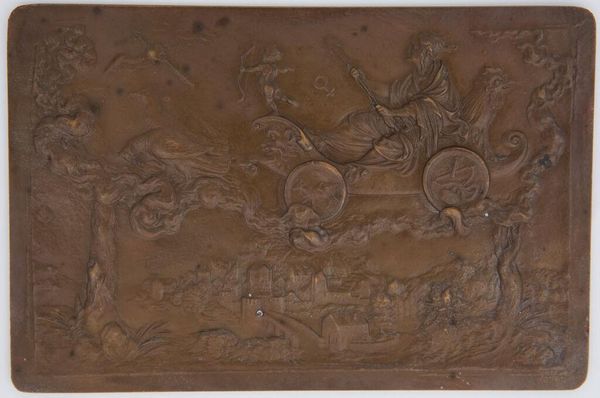 Editor: This is "The Foolish Man," part of the "Bacchus" series, an anonymous piece. It’s quite small, about 5 by 7 centimeters. It looks like it's made of bronze. The scene seems chaotic and the figure anguished. What strikes you most about it? Curator: It's a powerful visual statement about the dangers of unchecked privilege and power, masked as revelry. The figure’s anguish reflects a loss of control that, historically, impacts marginalized communities disproportionately. How does the composition reinforce that message to you? Editor: I see it in the contrast between the figure's disarray and the structured architecture in the background. Curator: Precisely! And thinking about the series' title, how does the "consequence of drunkenness" play into power dynamics? Editor: It suggests that intoxication can lead to abuses of power, disproportionately affecting the vulnerable. Curator: Exactly. These seemingly historical scenes offer us a lens to critique contemporary systems. Editor: I see this work in a new light now. Thank you! Curator: My pleasure. It's a powerful reminder of art's potential for social commentary.
