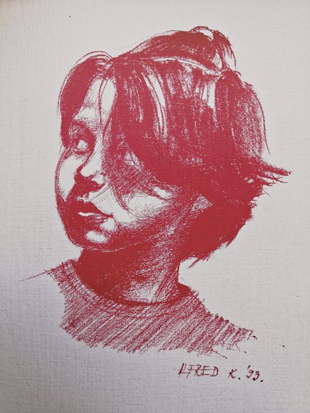 Editor: Here we have Alfred Freddy Krupa's "My mum in bed" from 1993, a pencil drawing. There's a vulnerability captured here, an intimacy. What strikes you most about this piece? Curator: For me, the immediate draw is the labor made visible. The artist's hand, through the pressure and direction of the pencil, constructs not only an image but also a tangible record of process. The 'red' pencil itself speaks to accessibility – a commonplace material. Considering the socio-economic context of 1993, was this choice driven by resourcefulness? Editor: That's a really interesting point! I hadn’t considered the red pencil as a conscious choice. Is it important to know more about that socio-economic context in order to interpret this? Curator: Absolutely. It prompts us to think about artmaking outside rarefied studios. Was readily available material consciously chosen for its utility and cost? Or was there more choice than meets the eye? Furthermore, notice the emphasis on the visible work; it rejects any attempt to hide process of creation, or labor involved, elevating "low" materials by skillful usage. Editor: It feels very direct, almost unpretentious in a way. It's not trying to be something it's not. Curator: Precisely. This challenges the traditional hierarchy separating "fine art" from everyday craft. How does elevating these modest materials, like a simple red pencil and ordinary paper, challenge traditional boundaries? Does it allow Krupa to focus on pure expression through simple labor, and, in so doing, pay closer attention to his subject matter? Editor: I'm now seeing how the simplicity really enhances the emotional content rather than detracting from it. The process really informs the portrait’s emotional impact. Curator: Yes, considering both production and reception is critical to art and labor. Editor: This has totally changed how I look at this work. Seeing the art in its material, the choice, really deepens its significance.