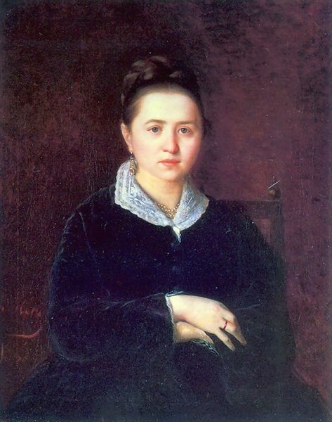 Editor: Here we have Pierre-Auguste Renoir's "Madame Paul Berard," painted in 1879. The piece, rendered in oil paint, feels quite intimate, perhaps due to its relatively small scale and close-up composition. The sitter's gaze is captivating, and her muted color palette suggests a reserved elegance. What stands out to you in terms of pure visual construction? Curator: Notice how Renoir uses visible brushstrokes not to obscure form but to subtly animate it. Light seems to shimmer across the surface, almost independent of the objects it describes. What seems like mere atmospheric rendering in the background, is really an example of value and hue manipulating form itself. The restrained palette isn’t just a reflection of the subject's personality; it's a conscious choice to harmonize color relationships, lending a soft, unifying tonality. Have you observed the handling of light around her face? Editor: Yes, the luminosity is quite striking! It’s not harsh or glaring, but rather a gentle radiance that highlights her features and brings them to life. The way light describes form is very successful in creating visual unity. How does the portrait's lack of stark contrasts relate to his broader Impressionist style? Curator: Renoir's approach diverges somewhat. While Impressionism often breaks down light into fragmented strokes of pure color, here we see more blended passages and a focus on capturing subtle tonal variations, even in dark areas. Renoir balances impressionistic fleeting moments with a sensitivity for classical form, using color not just descriptively but structurally. He is also quite interested in how colors communicate between areas on the canvas. For example, her flesh tone is closely related to the backdrop color which causes a visual harmony, where the entire image seems to vibrate. Editor: Fascinating. It's almost as though Renoir sought a middle ground, seeking harmony over revolution in the realm of Impressionist portraiture. It goes against my conception of impressionism, in some ways! Curator: Indeed. Thinking about the painting solely as an exercise of formal considerations truly enriches its reception, revealing nuances that contextual analyses may obscure. The more closely one attends to form and hue, the more one discovers in "Madame Paul Berard."