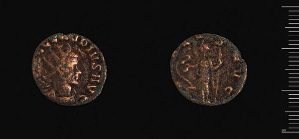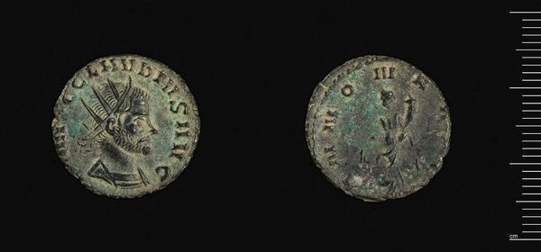 Curator: There's a hushed reverence in looking at this small coin. It’s titled "AE Constantius Caesar" and it resides in the Harvard Art Museums. It's attributed to Constantius I Chlorus. Editor: You know, I see this little disc, worn smooth by time and touch, and I instantly feel connected to all the hands it must have passed through. Curator: Absolutely, and it’s fascinating to think of coins as instruments of propaganda. This one, surely, aimed to solidify Constantius's image, even with its diminutive size. Editor: To imagine the weight of an empire resting, symbolically, in the palm of one’s hand... Does it make you wonder about the value of power, then and now? Curator: It does indeed. The politics of imagery, even on something as small as this, played a crucial role in shaping perceptions of leadership and authority. Editor: I suppose it’s a reminder that every mark, every line, carries an echo of a story, of intentions, of a world we can only begin to grasp. Curator: A tangible, if tiny, piece of history, hinting at the grand narrative. Editor: Exactly. I’ll be contemplating this humble artifact for quite some time.