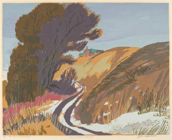 Curator: Wet Afternoon. That title is more than descriptive, it's a feeling. Eric Ravilious captured it perfectly in this watercolor from 1938, a view of the Church of St. Mary, Capel-y-ffin, in Wales. Editor: A lonely stroll on a drizzly day... Yes, it conjures a specific mood. Somber, yet peaceful. A person walking away from us down a road completely engulfed by thick hedges. The muted palette really reinforces that melancholic feeling. It’s like stepping into a half-remembered dream. Curator: The path leading into the background operates almost like a metaphor. There's a sense of pilgrimage; note how our eye is directed, not only toward the church, but toward the walker, silhouetted by the diffused light beyond. Editor: Exactly. The light! It’s that diffused quality of a rainy afternoon that Ravilious nails. The muted tones and soft lines amplify this effect. The way the hedges are painted - almost a mosaic of greens – they’re vibrant despite the dreary weather. Curator: Observe the symbolic power imbued into the location. Remote, a solitary figure journeying toward spiritual sustenance, all painted on paper with humble watercolor. It really reinforces Ravilious’ place within a particular strain of British Romanticism that blends the mystical with the everyday. Editor: It makes me want to grab my wellies and go get deliciously damp myself. Is it weird to find comfort in a picture of dampness? I think this painting captures a peculiar form of solace that comes from being alone in nature, accepting the quiet resignation of a gray day. There's a certain comfort in that solitude. Curator: Not weird at all. It speaks to the soul. We can see reflections of that spirit across eras, from Romantic poets through postwar painters who, similarly, found spiritual renewal in austere landscapes. Editor: Absolutely. There’s a lot of profound stuff bubbling underneath something seemingly as simple as a rainy day in the Welsh countryside, beautifully articulated here. It invites introspection...and an urgent craving for a hot cup of tea, perhaps.