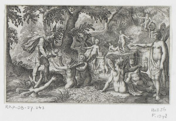 Editor: We're looking at "Scenes from the Life of Saint John the Baptist," a woodcut made by Frans Crabbe van Espleghem sometime between 1517 and 1527. It's teeming with figures, all rendered in this stark black and white. There's a really captivating sense of depth despite the limited tones. How do you interpret the symbolism present in this piece, and its reflection on cultural memory? Curator: The key is within those multitudes. Consider Saint John as the "voice crying out in the wilderness," an archetype representing dissent and spiritual awakening. The crowds—their huddled masses in that central cave—yearn. They seek guidance. Look at how Crabbe positions the wilderness itself; a landscape mirroring internal searching. How do the trees and craggy rocks function, psychologically, do you think? Editor: They create a sense of isolation and maybe the obstacles that people face when confronting something new, or challenging accepted norms. Curator: Exactly. Notice the recurring motif of enclosed spaces – the cave, the tight groups of figures. It hints at the societal constraints, the psychological pressures to conform. John stands apart, bathed in light, almost an exile by choice, isn’t he? The halo signifies the promise of spiritual enlightenment that often comes with such separation and dedication to higher ideals. What meaning might that contrast between light and shadow contain? Editor: I think the interplay underscores the struggle between awareness and ignorance, the readily visible and the obscured. So, by positioning John as a beacon within the dark forest, Crabbe is advocating the transformative power of questioning prevailing beliefs? Curator: Precisely! This woodcut functions as more than just a religious narrative; it becomes a potent symbol for individual thought within a broader cultural consciousness, continually renewing itself across time. What's your lasting impression of that renewal? Editor: Seeing the imagery as connected to universal questions makes the work still feel alive and significant even today. It isn't just a relic of the Renaissance.