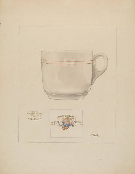 Editor: This is a pencil and watercolor drawing from around 1937 by Thomas Holloway. It depicts a candle holder, and it feels so delicate, almost dreamlike, with its pastel colors. What strikes you when you look at it? Curator: Immediately, the interplay of fragility and resilience catches my eye. A candleholder is meant to hold light, ward off darkness – a symbol of hope. But rendered in these almost translucent watercolors, it speaks to the ephemeral nature of that hope, doesn’t it? Do you see how the shell-like form, often associated with Venus and rebirth, is here almost skeletal, emptied? Editor: That’s interesting. I hadn't considered the "emptied" aspect. I was focused on the floral details, which seemed purely decorative. Curator: They are decorative, yes, but also deeply symbolic. Flowers are transient; their beauty fades. Consider how often floral motifs are used in memorial art. The combination of the candleholder, shell, and flowers creates a layering of symbols related to life, death, and memory, all intertwined. It's about light overcoming darkness, but with the understanding that darkness is always present, isn’t it? What does the color palette evoke for you? Editor: Now that you point it out, the pale colors feel less whimsical and more… wistful, maybe? Almost like a faded memory. Curator: Precisely! And it makes me wonder about the context in which Holloway created this piece, around 1937. The world was on the brink of war, and perhaps this delicate rendering is a reflection of that anxiety and uncertainty. Editor: Wow, I never would have pieced all of that together. I appreciate seeing how a seemingly simple object can hold so many layers of meaning! Curator: Indeed! It reminds us to look closely at the visual language artists employ and how those symbols resonate across time. There's always a dialogue to be had between the past and the present.